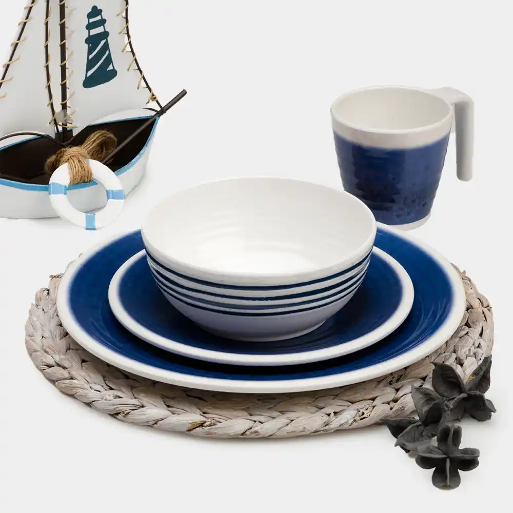 Flamefield Azure – where the majesty of the oceans meets your dining table. “From the Deep Blue to You!” Embracing a rich, dark blue tone, each piece resonates with the soothing whispers of the sea. Whether you’re dining outdoors beneath a canopy of stars or aboard a boat, swayed by gentle marine breezes, Azure promises not just style, but unmatched durability. This Azure 12-piece melamine dinnerware set, in a blue-and-white ceramic look, offers a perfect blend of durability and modern style, crafted from high-quality, break-resistant melamine.